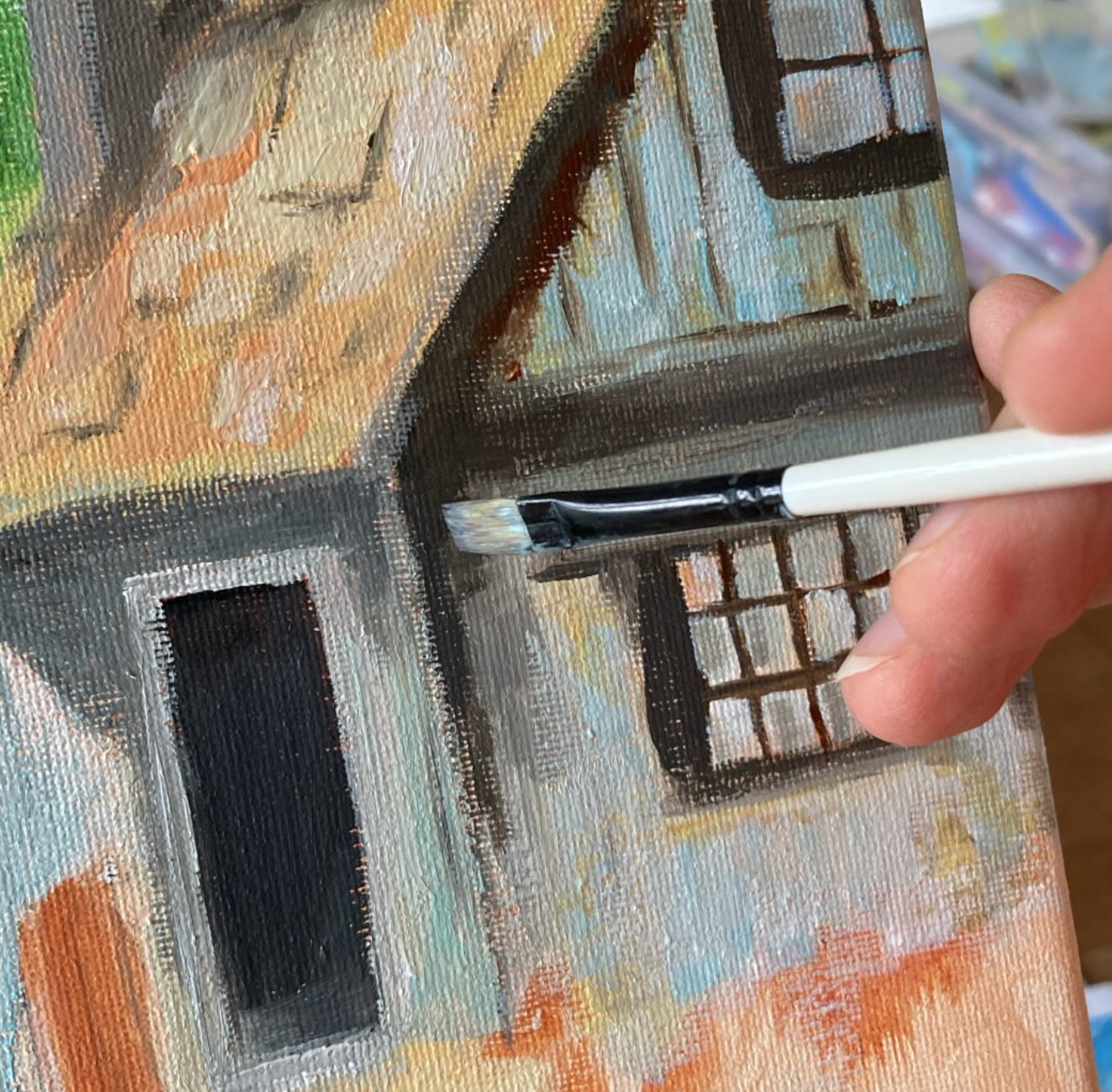 Ik schilder met acrylverf, omdat dat gewoon fijn werkt. Het droogt snel, het voelt direct, en het past bij hoe ik ben.